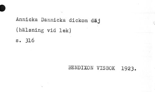 //// T //// Annicka Dannicka dickom däj //// ! //// (hälsning vid lek) //// s. 316 //// BENDIXON VISBOK 1923. ////