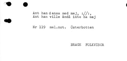 //// Ant han dansa med mej, ://:, //// ^^ Ant han ville ändå inte ha mej //// Nr 119 mel.not. Österbotten //// BRAGE FOLKVISOR ////