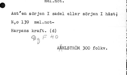 //// g //// Ant*en sörjen I sadel eller sörjen I häst; //// N,o 139 mel.not- //// i //// )- //// Harpans kraft, (d) E //// ! //// A^HLSTRÖM 300 folkv. ! //// H //// H //// s //// n //// i ////