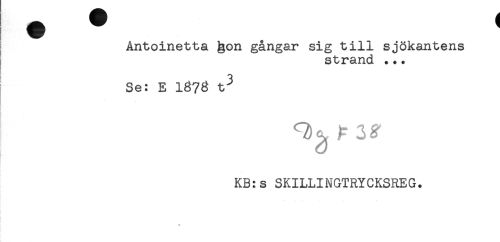 //// Antoinetta ^on gångar sig till sjökantens //// strand ... //// Se: E 1373 t^ //// KB:s SKILLINGTRYCKSREG. //// % ////