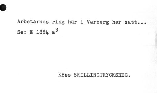 //// Arbetarnes ring här i Varberg har satt... //// Se: E 1884 a 3 //// KBss SKILLINGTRYCKSREG. ////