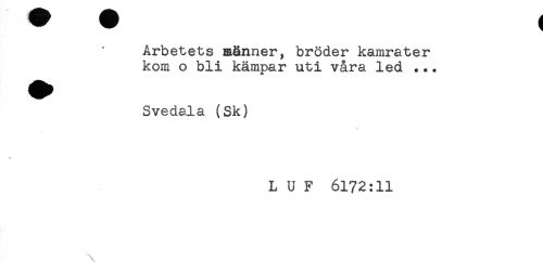 //// Arbetets männer, bröder kamrater //// kom o bli kämpar uti våra led ... //// Svedala (Sk) //// ** //// L U F 6172:11 //// \ ////