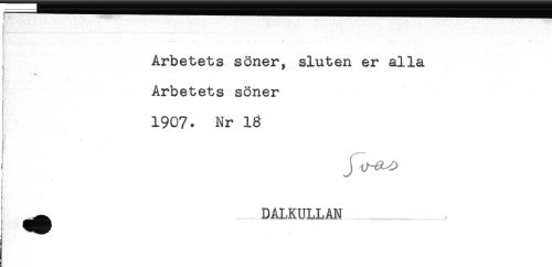 //// .....- ... . . A //// Arbetets söner, sluten er alla //// w //// Arbetets söner //// v //// t //// ! //// 1907. Nr 18 //// J th^) //// : ^ DALKULLAN ////