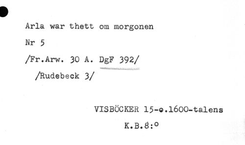 //// Arla war thett om morgonen //// Nr 5 //// /Fr.Arw. 30 A. DgF 392 //// //Rudebeck 3 //// /VISBÖGKER 15-o.l600-talens //// K.B. ////