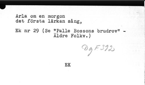 //// Arla om en morgon //// det första lärkan sång, //// * //// Ek nr 29 (Se "Palle Bossons brudrov" - //// Äldre Folkv.) //// ! //// i //// i //// EK //// < //// E ////