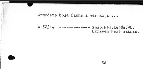 //// f //// Armodets boja finns i var koja ... //// t //// : //// ) //// A 523:4 -----— - insp.Rtj.14384:90. //// Skriven text saknas. //// ^ RA ////
