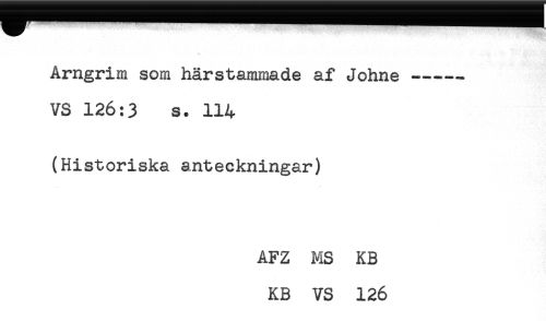 //// Arngrim som härstammade af Johne ----- //// VS 126:3 s. 114 //// (Historiska anteckningar) //// AFZ MS KB //// KB VS 126 ////