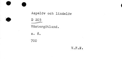 //// ^ 1 //// Aspelöv och lindelöv //// Västergötland. //// s. 8. //// 700 //// v.F.y. ////
