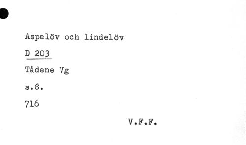 //// Aspelöv och lindelöv //// D 203 //// Tådene Vg //// s.g. //// 716 //// V.F.F. //// : //// t ////