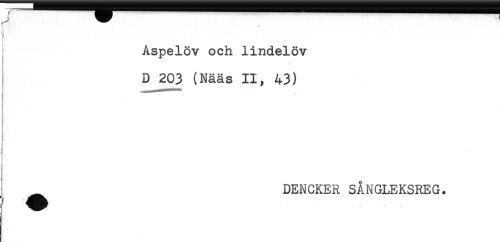 //// ?< * //// Aspelöv och lindelöv //// DJ203 (Nääs II, 43) //// ^ DENCKER SÅNGLEKSREG. ////