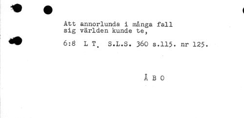 //// Att annorlunda i inånga fall //// sig världen kunde te, //// * - //// 6:8 L T. S.L.S. 360 s.115. nr 125. //// ÅBO ////