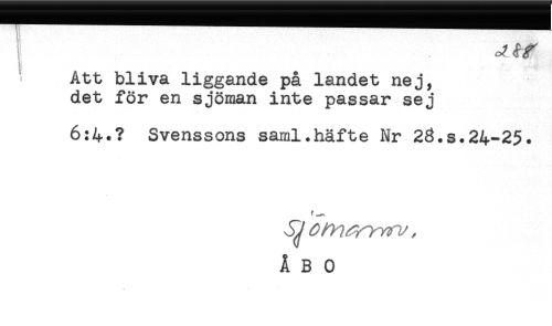 //// ^ Att bliva liggande på landet nej, //// det för en sjöman inte passar sej //// 6:4.? Svenssons saml.häfte Nr 26.s.24-25. ////