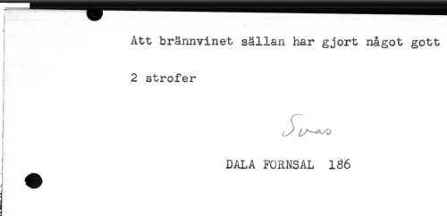 //// Att brännvinet sällan har gjort något gott //// 2 strofer //// DALA FORNS AL 186 ////