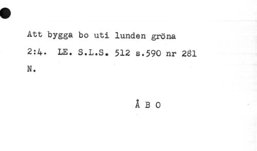//// Att bygga bo uti lunden gröna //// 2:4. LE. S.L.S. 512 s.590 nr 281 //// N. //// ÅBO ////