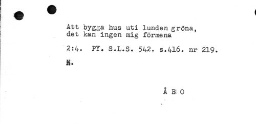 //// Att bygga hus uti lunden gröna, //// det kan ingen mig förmena //// . //// 2:4. PY. S.L.S. 542. s.416. nr 219. //// N. //// ÅBO ////