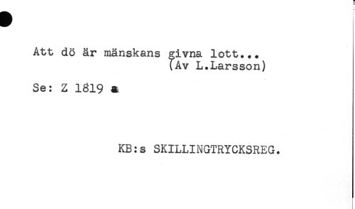 //// Att dö år mänskans givna lott... //// (Av L.Larsson) //// Se: Z 1819 A //// KB:s SKILLINGTRYCKSREG. ////