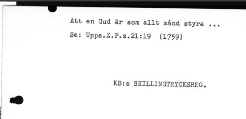 //// Att en Gud är som allt månd styra ... //// Se: Upps.Z.P.s.21:19 (1759) //// t //// : //// j //// ! KB:s SKILLINGTRYCKSREG. ////