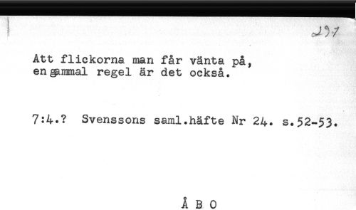 //// Att flickorna man får vänta på, //// en^mmal regel är det också. //// i //// 7:4.? Svenssons saml.häfte Nr 24. s.52-53. ////