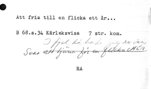 //// Att fria till en flicka ett år... //// B 63.S.34 Kärleksvisa 7 str. kom. //// RA ////
