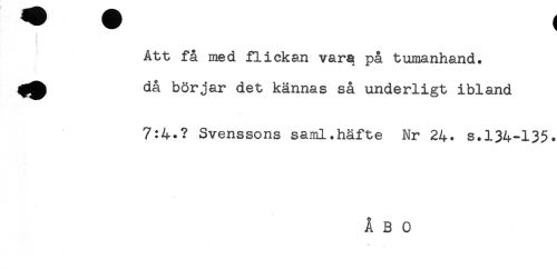 //// Att få med flickan vara på tumanhand. //// då börjar det kännas så underligt ibland //// 7:4.? Svenssons saml.häfte Nr 24. s.134-135. ////