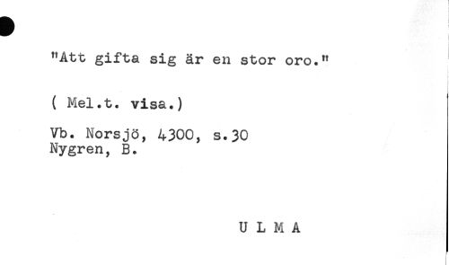 //// < //// "Att gifta sig är en stor oro." //// ( Mel.t. visa.) //// Vb. Norsjö, 4300, s.30 //// Nygren, B. //// U L M A ////