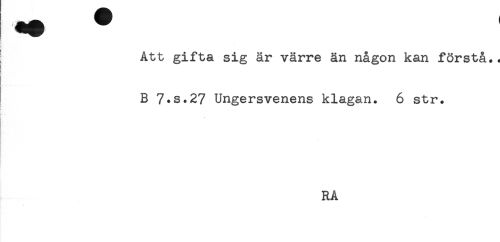 //// r //// Att gifta sig är värre än någon kan förstå.. //// B 7.S.27 Ungersvenens klagan. 6 str. //// RA ////
