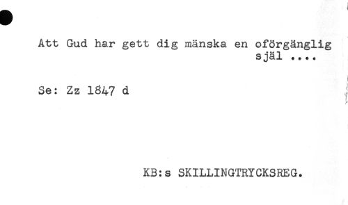 //// Att Gud har gett dig mänska en oförgänglig //// själ .... //// j //// Se: Zz 1847 d //// KB:s SKILLINGTRYCKSREG. ////