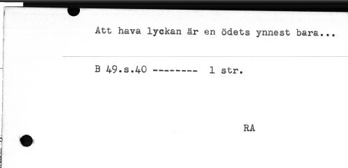 //// ( //// & //// Att hava lyckan år en ödets ynnest bara... //// ) //// ^ B 49.S.40--- 1 str. //// < //// j //// RA ////