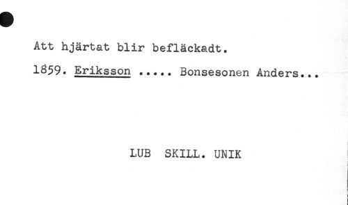 //// Att hjärtat blir befläckadt. //// 1859. Eriksson ..... Bonsesonen Anders... //// LUB SKILL. UNIK //// < //// i //// i ////