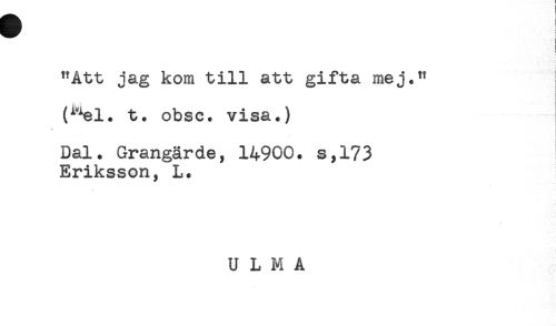 //// i //// i //// "Att jag kom till att gifta mej." ! //// (^el. t. obsc. visa.) //// * //// Dal. Grangårde, 14900. s,173 //// Eriksson, L. //// U L M A ////