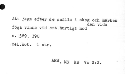 //// Att jaga efter de snälla i skog och marken //// . den vida //// foga vinna vid ett hurtigt mod //// s. 369, 390 //// mel.not. 1 str. //// ARM. MS KB Vs 2:2. //// ! //// ! ////