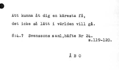 //// Att kunna åt dig en käresta få, //// det icke så lätt i världen vill gå. //// 8:4.? Svenssons saml,häfte Nr 24. //// s.119-120. ////