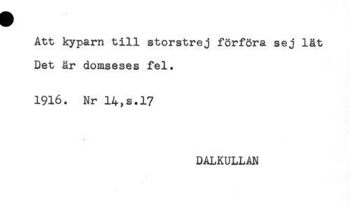 //// Att kyparn till storstrej förföra sej låt //// Det är domseses fel. //// 1916. Nr 14,s.l7 //// * //// DALKULLAN ////