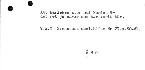 //// Att kärleken stor uti Norden är //// det vet ja envar som har varit kär. //// ! //// i //// < //// 9:4.? Svenssons saml.häfte Nr 27.S.80-81. ////