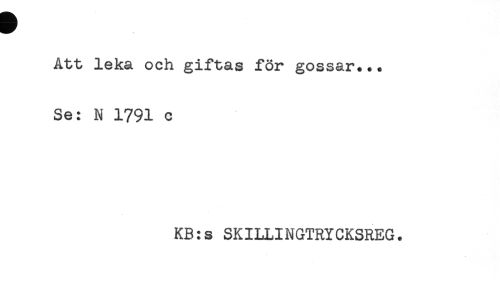 //// Att leka och giftas för gossar... //// Se: N 1791 c //// KB:s SKILLINGTRYCKSREG. ////