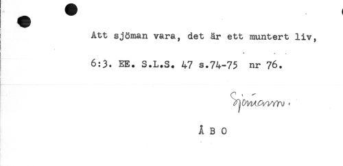 //// Att sjöman vara, det är ett muntert liv, //// - //// ! . ^ ^ //// 6:3. EE. S.L.S. 47 s.74-75 nr 76. //// I //// ----- //// h ////