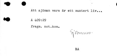 //// Att sjöman vara är ett muntert liv..* //// A 409:29 //// fragm. not.kom* //// RA ////