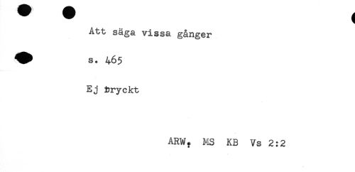 //// ^ 1 //// Att säga vissa gånger //// Ej tryckt //// ARW, MS KB Vs 2:2 ////