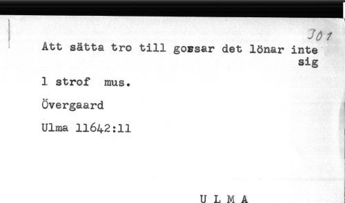 //// ! . //// //// /Att sätta tro till gossar det lönar inte //// sig //// 1 strof mus. //// Övergaard //// Ulma 11642:11 //// ! //// f //// ULMA ////