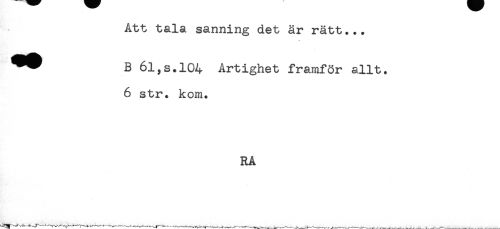 //// Att tala sanning det är rätt... //// ^^ B 61,s. 104 Artighet framför allt. //// 6 str. kom. //// RA ////