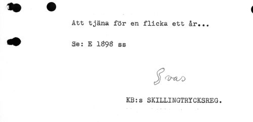 //// ** ^ — //// Att tjäna för en flicka ett år... //// ^^ Se: E 1693 ss //// KB:s SKILLINGTRYCKSREG. ////