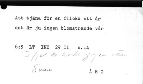 //// Att tjäna för en flicka ett år //// det är ju ingen blomstrande vår //// 6:5 LT INE 29 II s.14 //// // ^ //// /^ ^^ ÅBO //// * i //// } //// b //// 5 //// k ////
