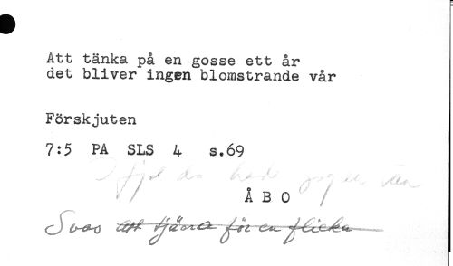 //// Att tänka på en gosse ett år //// det bliver ingen blomstrande vår //// Förskjuten //// 7:5 PA SLS 4 s.69 //// 1 <? //// - ^^ 1-- . . //// ÅBO //// /