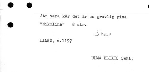 //// Att vara kär det är en gruvlig pina //// ^ "Nikolina" 8 str. //// j //// 11432, s.1197 //// ULMA BLIXTS SAML. ////