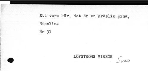 //// - " * ^ - - //// Ett vara kär, det är en gräslig pina, //// Nicolina //// Nr 31 //// ! //// i //// t //// i LÖFSTRÖMS VISBOK //// ^ J ////
