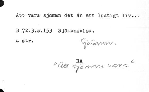 //// Att vara sjöman det är ett lustigt liv... //// B 72:3.s.153 Sjömansvisa. //// 4 str. C- ////