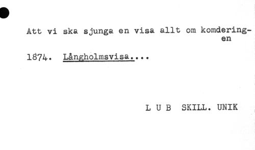 //// Att vi ska sjunga en visa allt om komdering- //// en //// I874. Långholmsvisa.... //// L U B SKILL. UNIK //// 1 ////