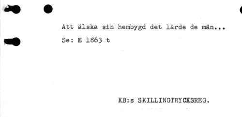 //// Att älska sin hembygd det lärde de män..* //// t)^^ Se: E 1863 t //// KB:s SKILLINGTRYCKSREG. ////