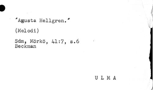 //// *Agusta Hellgren.^ ^ //// (Melodi) ^ //// Sdm, Mörkö, 41:7, s.6 j //// Beckman T //// U L M A ^ ////
