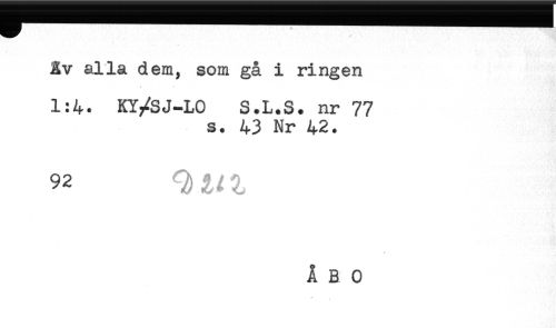 //// åv alla dem, som gå i ringen //// 1:4. KY/SJ-LO S.L.S. nr 77 //// s. 43 Nr 42. //// 92 ////